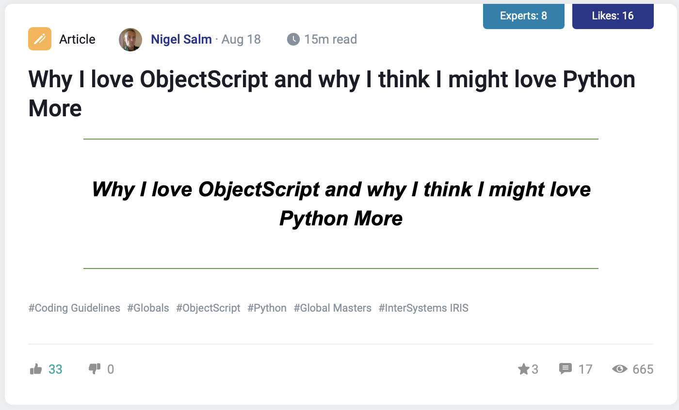 Como sabéis, en 2021 lanzamos un nuevo concurso para los miembros de la Comunidad de Desarrolladores de InterSystems Community - el Concurso de Artículos Técnicos.
