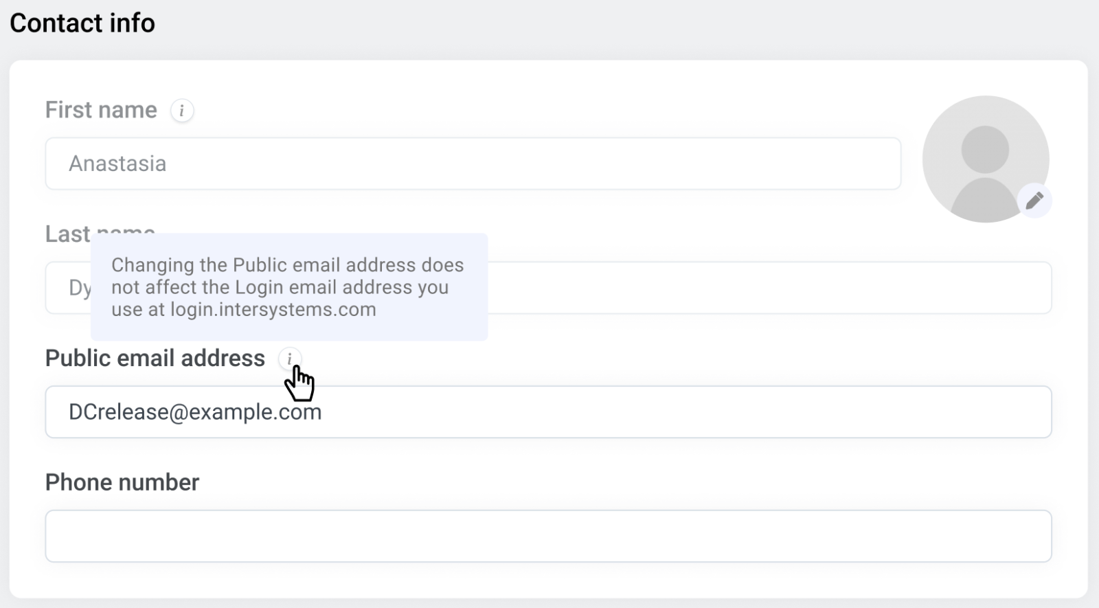 En el bloque "Información de contacto", puedes añadir tu número de teléfono profesional, cambiar tu foto y la dirección de email en la que quieres recibir las notificaciones de la Comunidad.
