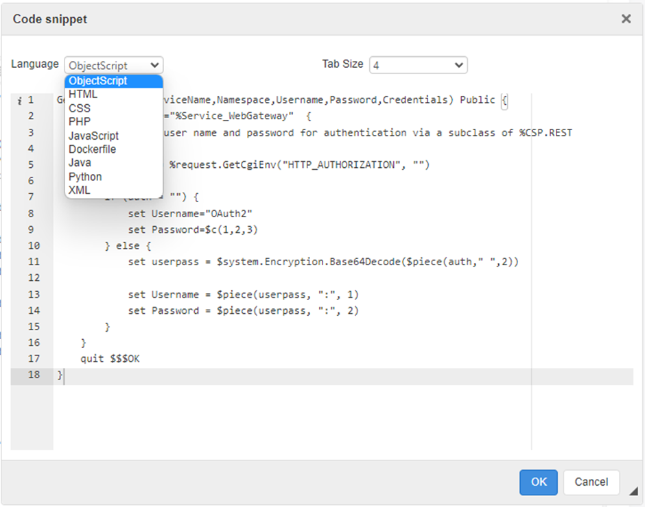 En él, se puede elegir el lenguaje de programación y el tamaño de la tabulación.