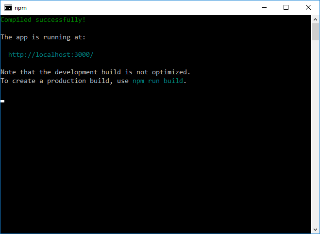 Este comando iniciará un servidor de programación en Node.js, que se ejecutará en localhost en el puerto 3000 y abrirá la aplicación para ti en tu navegador estándar (Chrome):