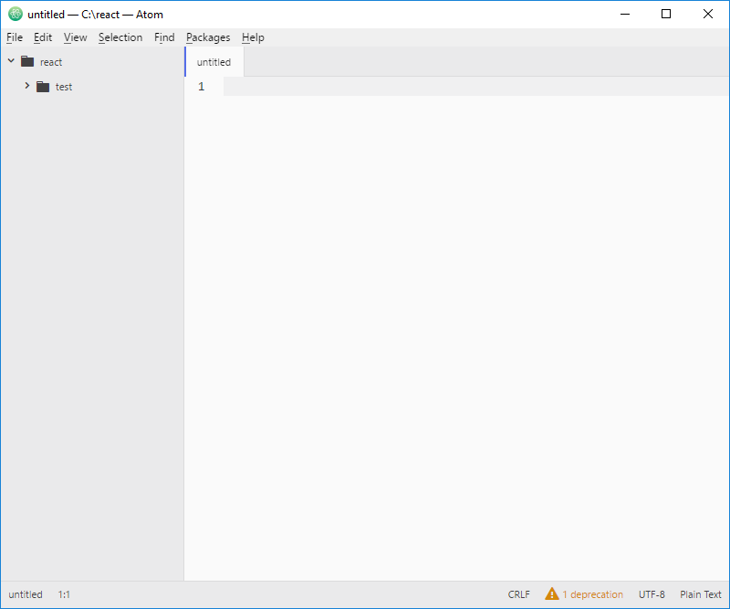 Inicia el editor, y añade tu carpeta del proyecto C:\react en el menú File: