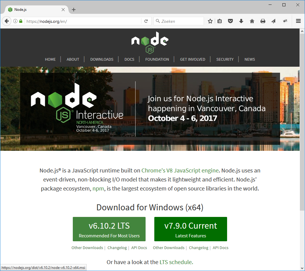 Primero, se comienza con la descarga del último Node.js LTS release:
