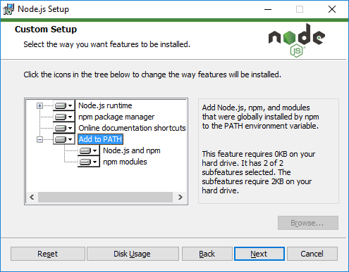 Crea un directorio vacío para la prueba, por ejemplo C:\Temp\nodetest