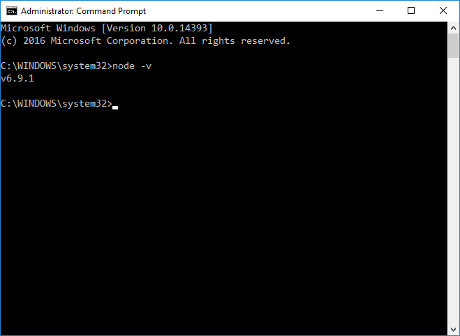 Como se puede ver, actualmente tengo instalada la versión Node.js v6.9.1 en mi sistema.