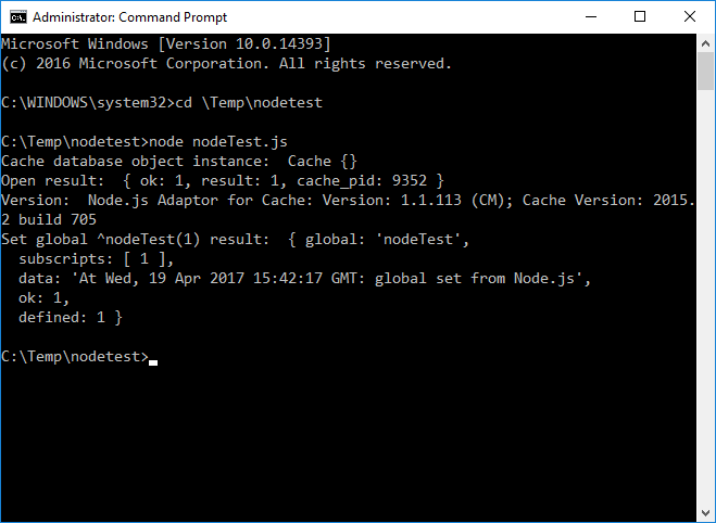 Node.js: Prueba de la instalación y conexión para usarlo con Caché