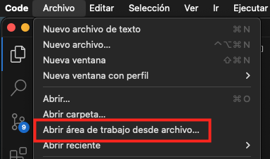 Abre desde VS code el área de trabajo del proyecto.