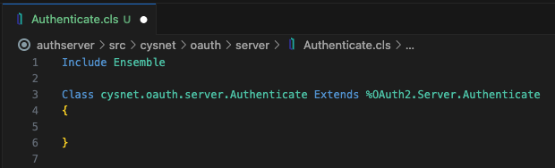 Crea una clase que extienda de %OAuth2.Server.Authenticate, en nuestro caso la hemos llamado cysnet.oauth.server.Authenticate.