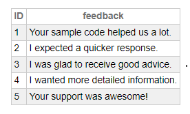 • "feedback" como %String