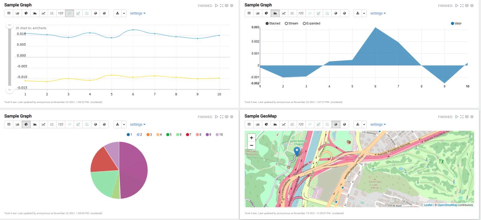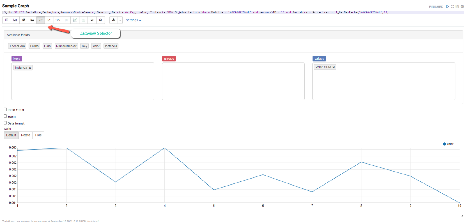 Por defecto, obtendrás los datos en una tabla, pero puedes conmutar rápidamente a un gráfico simplemente cambiando y configurando la vista.