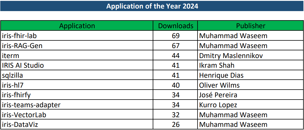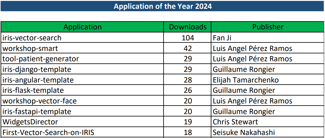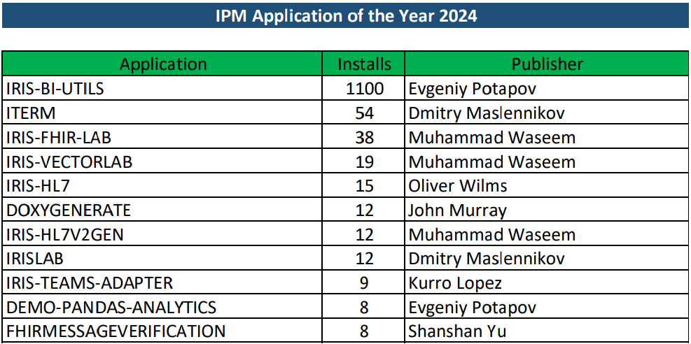 | 4 - 10 lugar: Aplicación del año de InterSystems IPM |