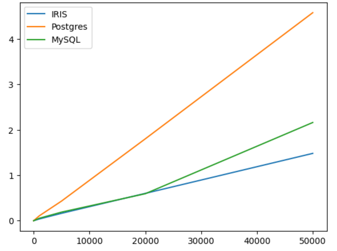Pruebas de rendimiento IRIS - PostgreSQL y MySQL mediante Python