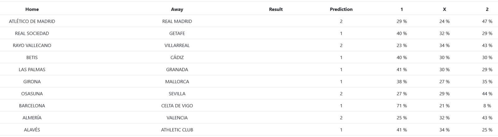 Nueva jornada de la Liga y nuevas predicciones de QuinielaML. Únicamente recordar que la pasada jornada QuinielaML acertó 9 de los 15 resultados, nada mal.