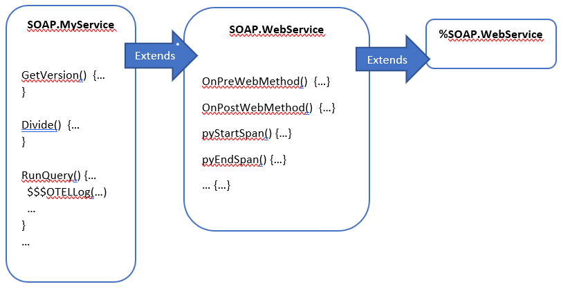 Transformar la clase IRIS %SOAP.WebService con la lógica de implementación de OpenTelemetry y las funciones de la librería Python en una nueva clase llamada SOAP.WebService. Incluir macros que se pueden utilizar en el código de usuario para contribuir aún más a la observabilidad y la trazabilidad.