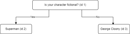 Esta nueva pregunta sustituirá el Id del nodo «Superman», el personaje “Snoopy” tendrá el doble del nodo de la nueva pregunta y el personaje «Superman» tendrá el doble del nodo de la nueva pregunta más uno.