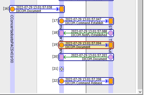 Los cuales reciben un fichero de estudios de imágenes médicas .dcm y lo envían tal cual. Para ello enviamos mediante el simulador dcm4che y en concreto mediante la línea: