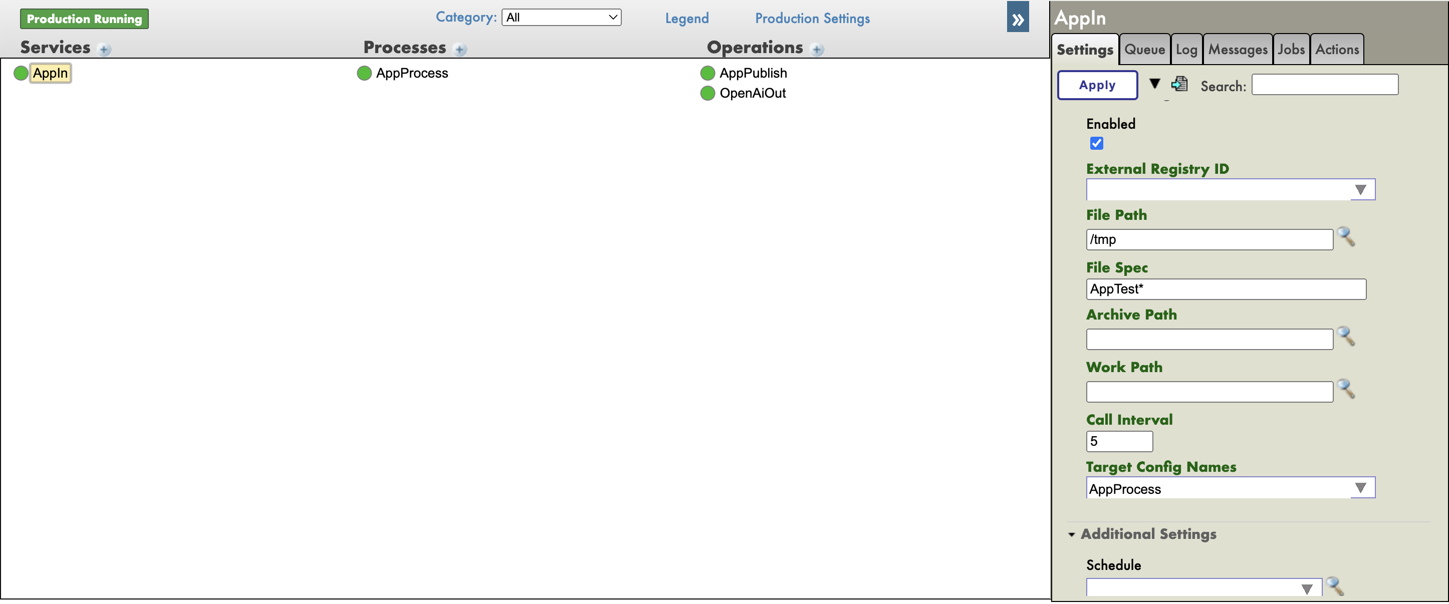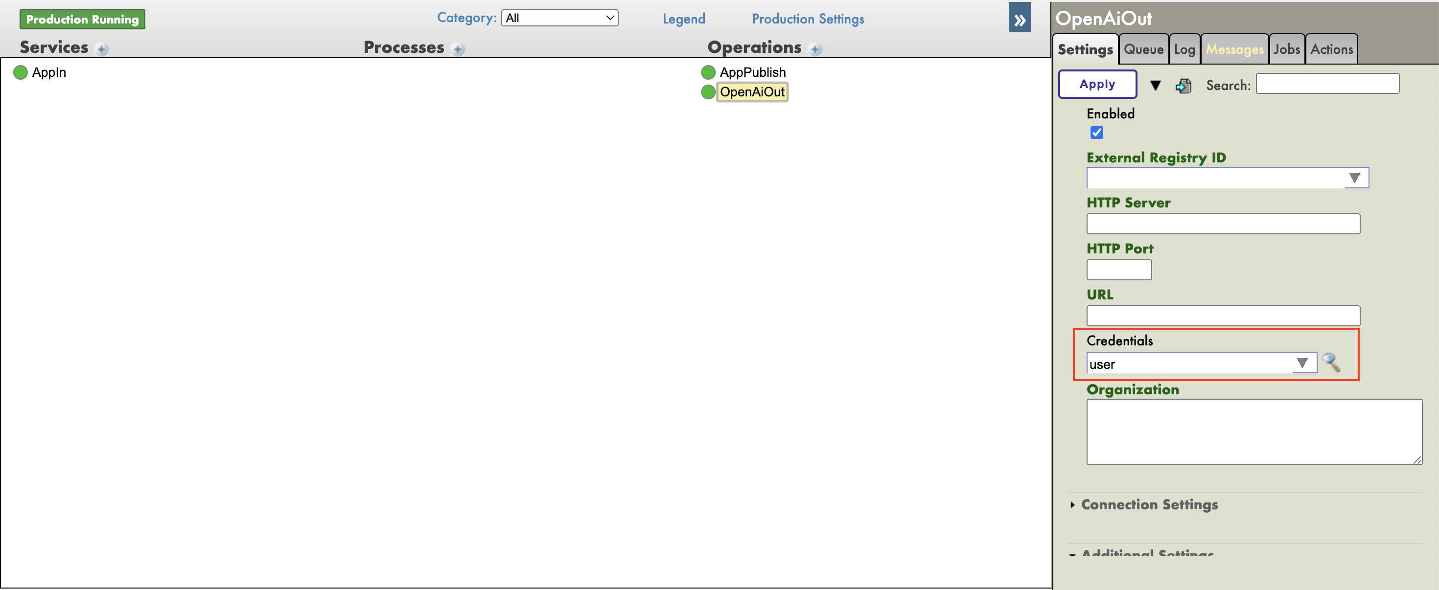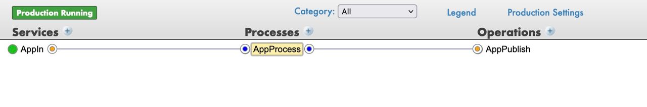Navega a Interoperability->[Namespace]->Configure->Production y asegúrate de que nuestra producción original se está ejecutando.