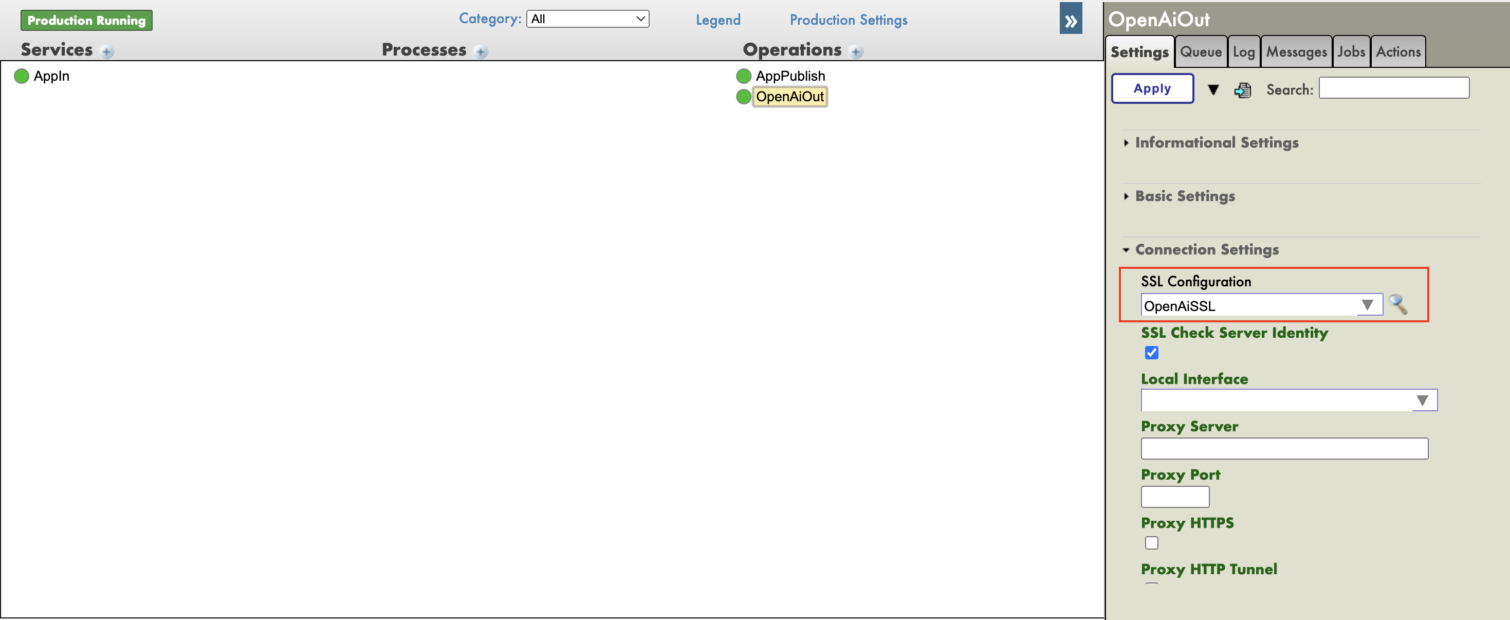 Configurar SSL: cree una nueva Configuración SSL de Cliente OpenAiSSL y selecciónela en el desplegable.