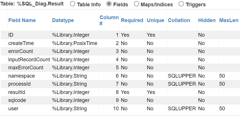 A continuación se muestra la estructura de %SQL_Diag.Result