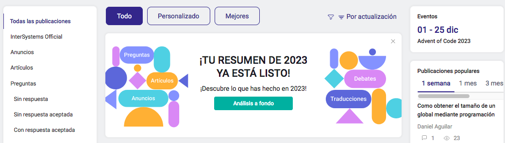 Como el año pasado, cada uno tenéis acceso a vuestro resumen personalizado – un repaso de vuestra actividad en la Comunidad, incluyendo el número de publicaciones que habéis hecho, vuestros comentarios y visualizaciones, vuestra publicación y etiqueta favorita... ¡y mucho más! 😁
