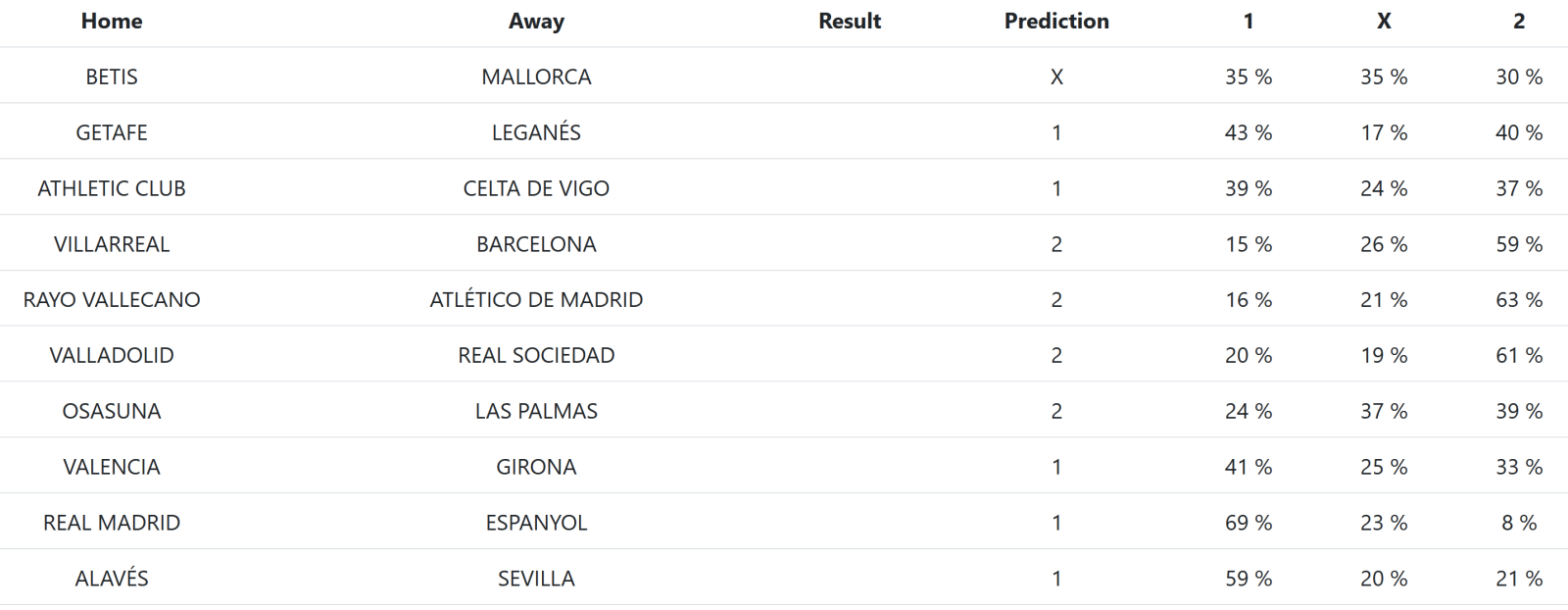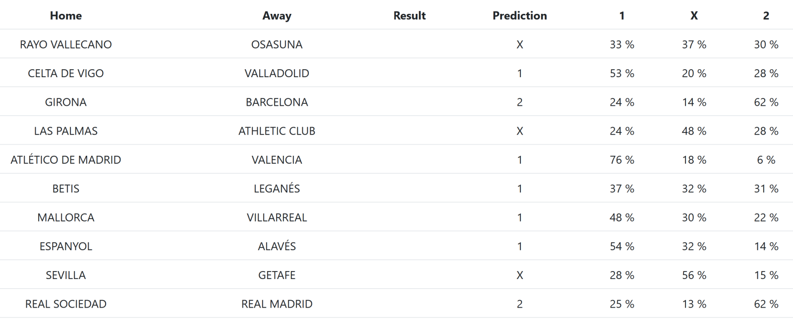 Aquí tenemos la predicción generada por QuinielaML para la Primera División:
