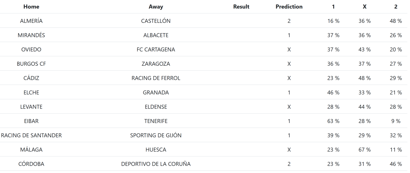 Para los partidos de Primera División tendremos las siguientes predicciones: