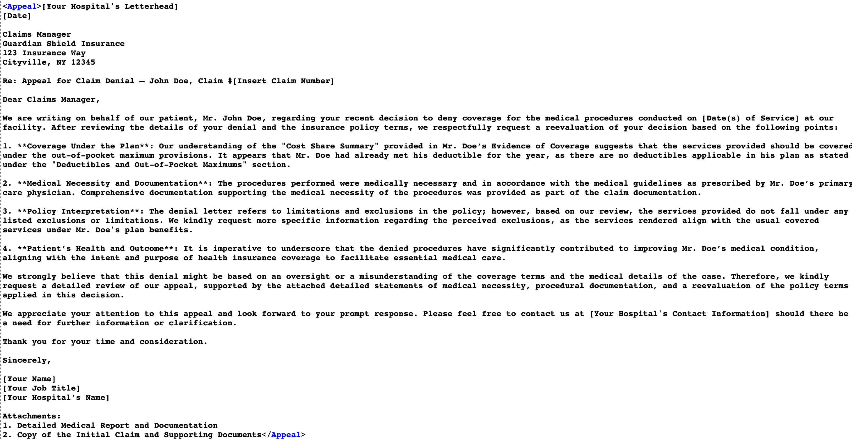 ¡Hola a todos! Aquí me gustaría compartir cómo utilizamos la búsqueda vectorial y la inteligencia artificial generativa (GenAI) con la tecnología de InterSystems. Como ejemplo, describiré el proyecto BG-AppealAI, que nuestra empresa presentó al concurso de Búsqueda Vectorial, GenAI y ML de InterSystems. La aplicación BG-AppealAI puede redactar una apelación si se sube un contrato de seguro y la carta de la compañía de seguros con la negativa a pagar los gastos médicos. Por supuesto, somos conscientes de que, en este momento, la IA no ha alcanzado un nivel tal como para crear documentos leg