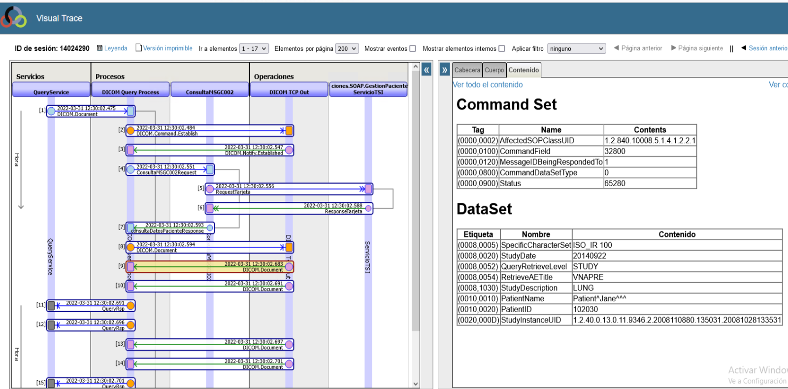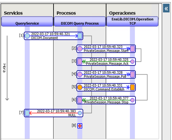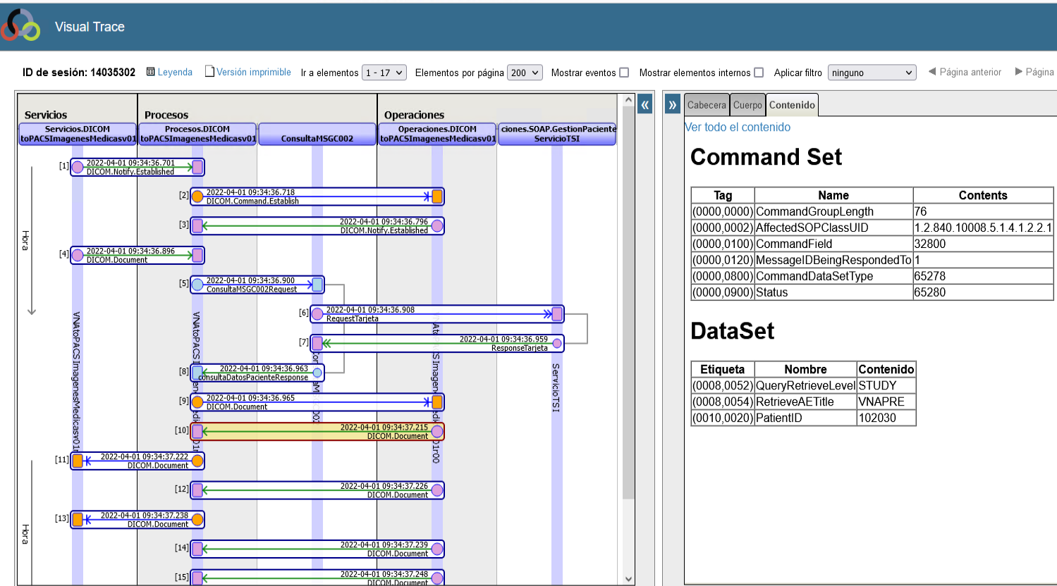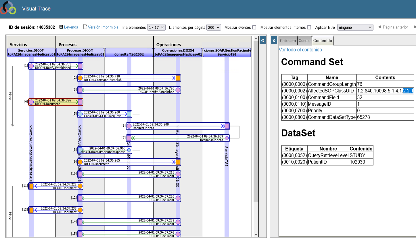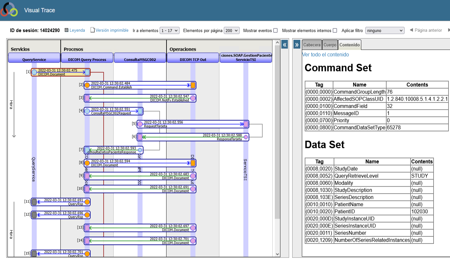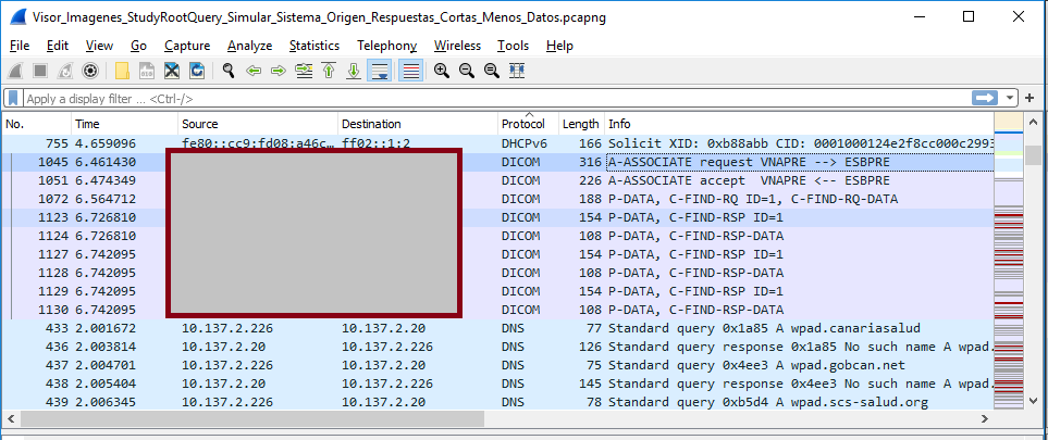 De esta forma observamos grandes diferencias entre la respuesta generada por el Sistema Destino, cuando enviamos desde nuestro servicio interno, frente a cuando remitimos la consulta simulando ser sistema origen por TCP de DICOM