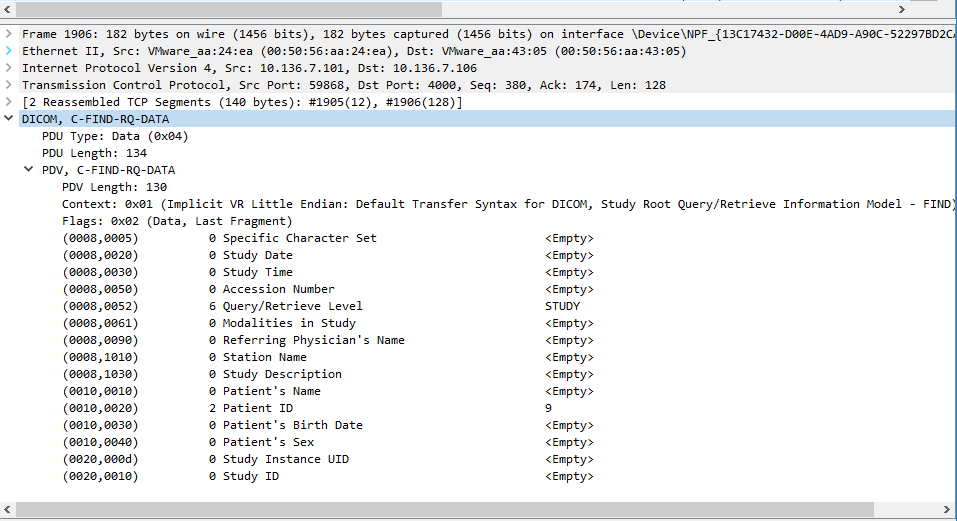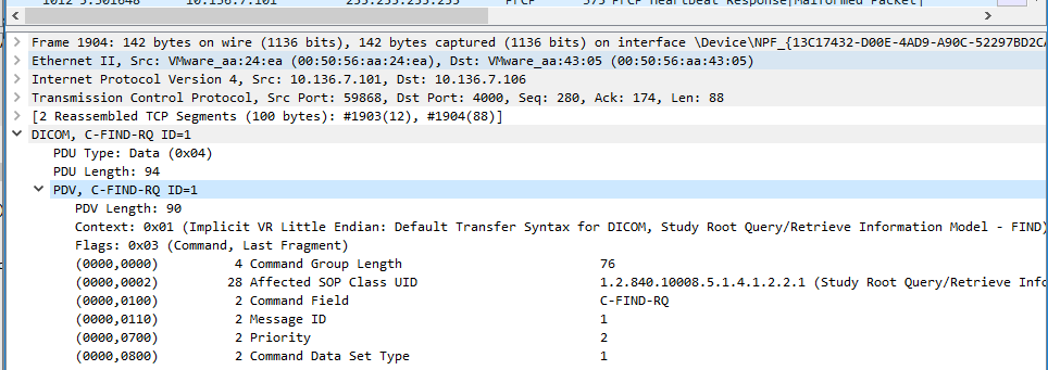 1072 … P-DATA, C-FIND-RQ ID=1, C-FIND-RQ-DATA