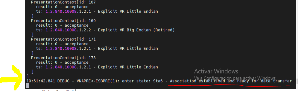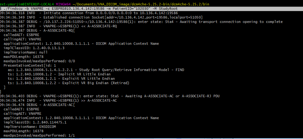 Mientras que cuando simulamos ser Sistema Origen, gracias a la herramienta ‘findscu’ de Línea de Comandos, ejecutamos: