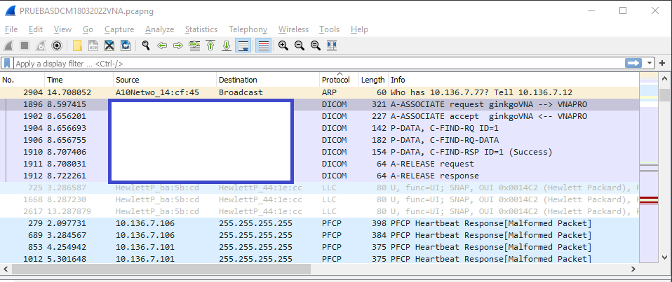 Además, también es importante recalcar que en la segunda petición reseñada como “P-DATA, C-FIND-RQ-DATA” existen diferencias: