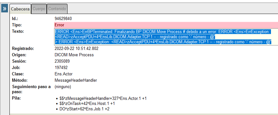ERROR <Ens>ErrBPTerminated: Finalizando BP DICOM Move Process # debido a un error: ERROR <Ens>ErrException: <READ>zAcceptPDU+4^EnsLib.DICOM.Adapter.TCP.1 -- - registrado como '-' número - @''