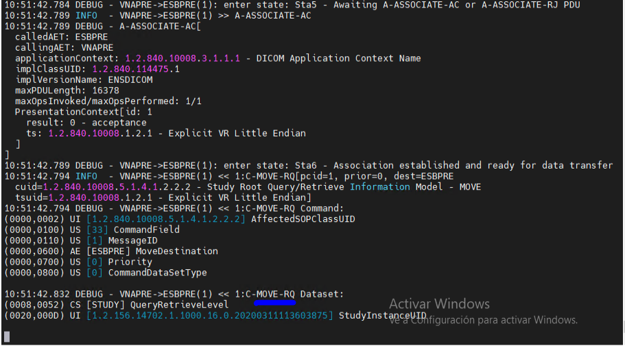 Lo más acuciante e intrigante es el hecho de que el Simulador dcm4che que replica ser un Sistema ORIGEN (envía al servicio) se queda a la escucha, tras haber enviado el C-MOVE-RQ: